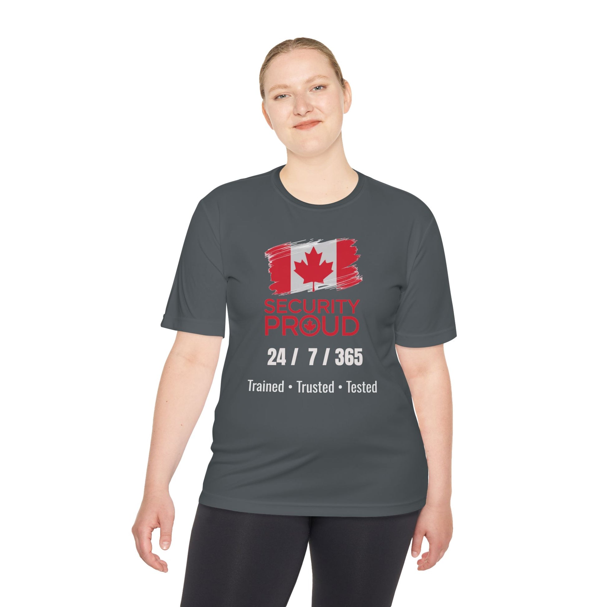 Security Proud Moisture-Wicking Tee | Black Unisex Fit | 24/7/365 | Trained • Trusted • Tested | Canada Edition